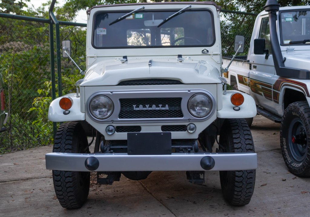 This one owner 1971 Toyota Land Cruiser FJ40 has a 3.9 liter inline 6 gasoline engine, paired with a 3-speed manual transmission. The body was fully refurbished and repainted in the original white color. Restored and repainted in the original white color, this FJ40 has the original bumpers, grill, and badges were restored and re-installed.