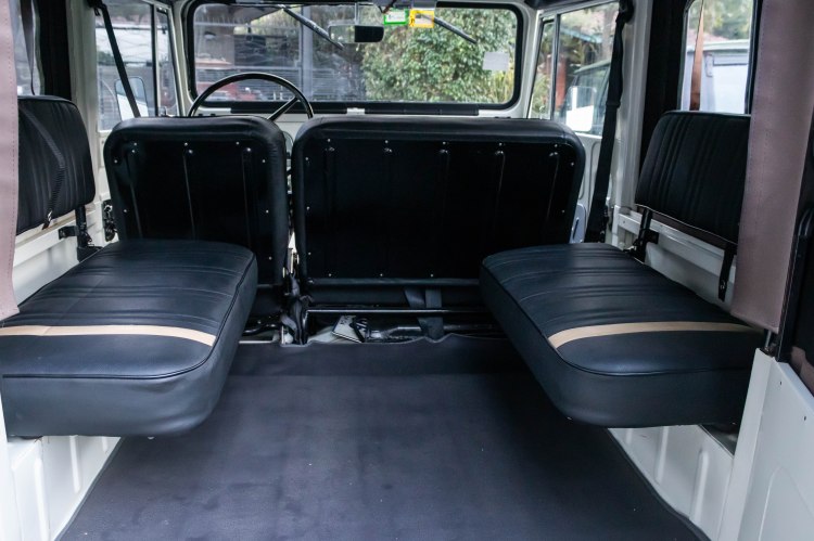 New Goodyear tires, including the spare located on the rear tailgate, have been installed. The seats have been re-upholstered with new leather, including the two jump seats in the rear. New rubber floor mats were installed.