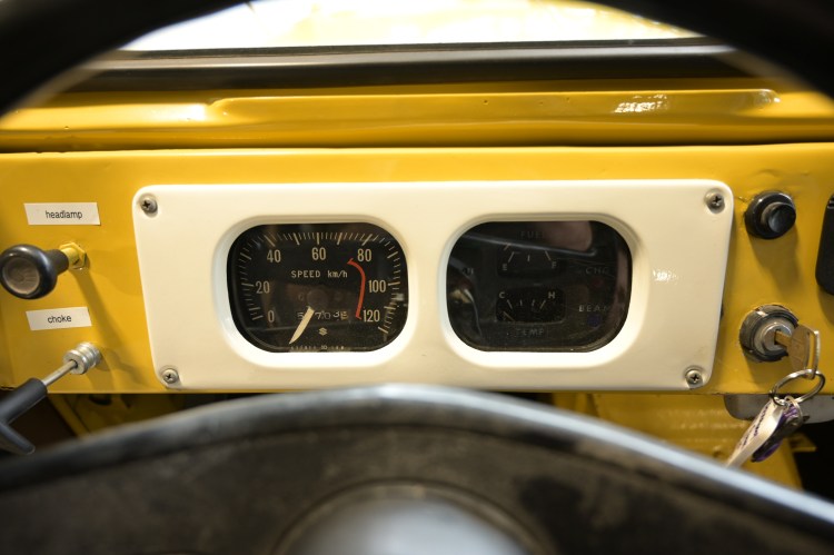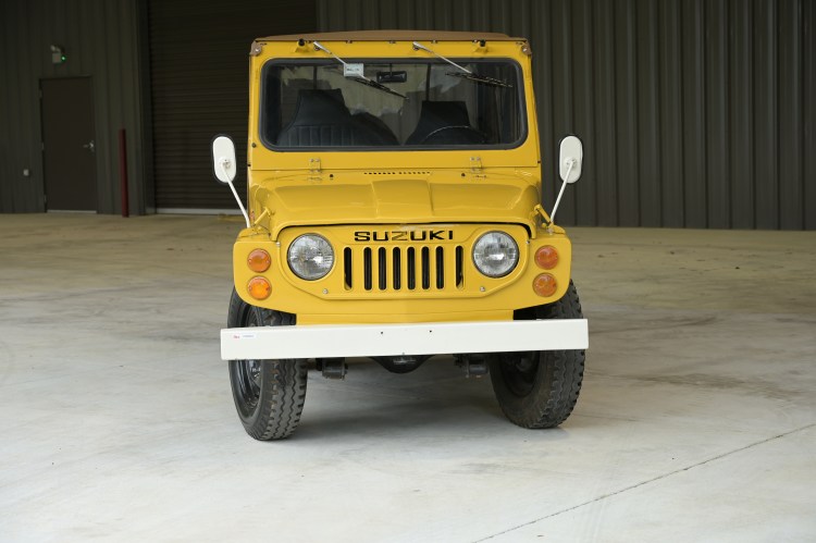 This 1977 Suzuki LJ50 was previously owned by two priests living in Costa Rica. It is finished in yellow covering a black leather seats and black rubber floor-mats. The LJ50 features a brand new tan soft-top. This LJ50 is powered by a 3 cylinder two-stroke petrol engine paired with a 4-speed manual transmission.