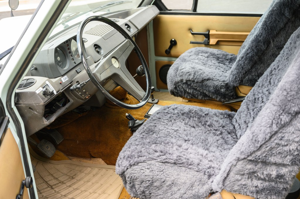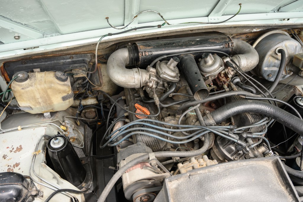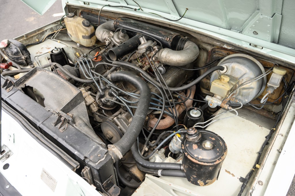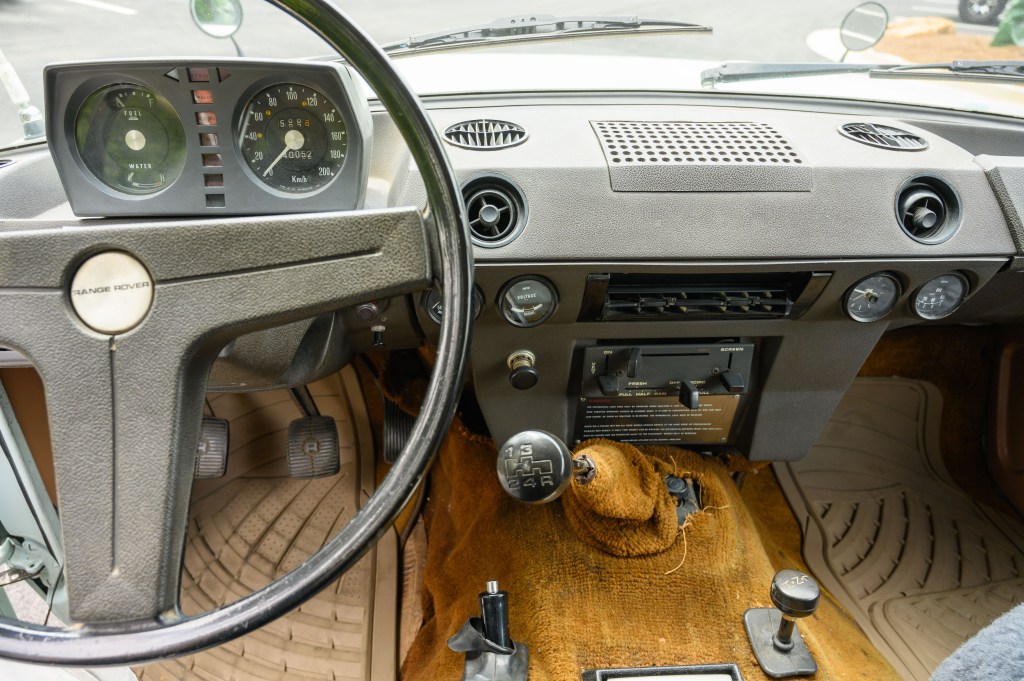 This one-owner Arctic White 1978 Range Rover Classic was repainted in the factory Arctic White. The interior and headliner are original, with palomino carpet and seats. The Rover is equipped with a 3.5L V8 carbureted gas engine and is all wheel drive. An aftermarket radio was installed in the 80’s, with the hole left in the dash to keep the history of the vehicle intact. The Rover comes with the original tools and documents.