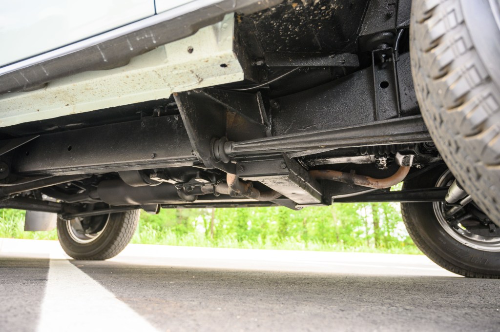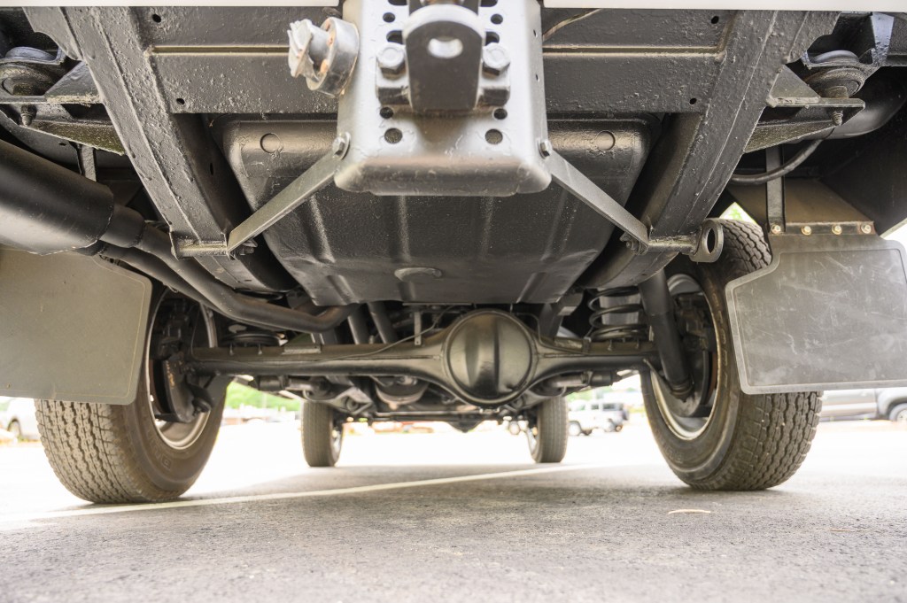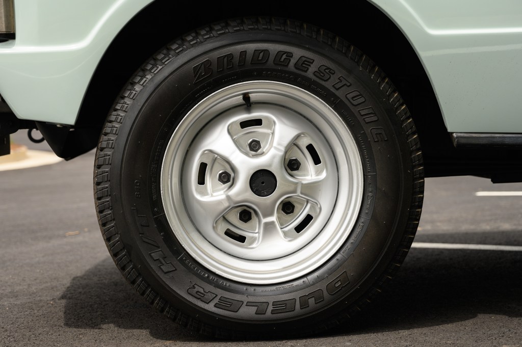 The truck was repainted in the original Arctic White. The body is rust free and filler free, with all the original badges. All wheels are original and restored, including the spare in the rear storage compartment, and new Bridgestone 205R 16C tires were installed.